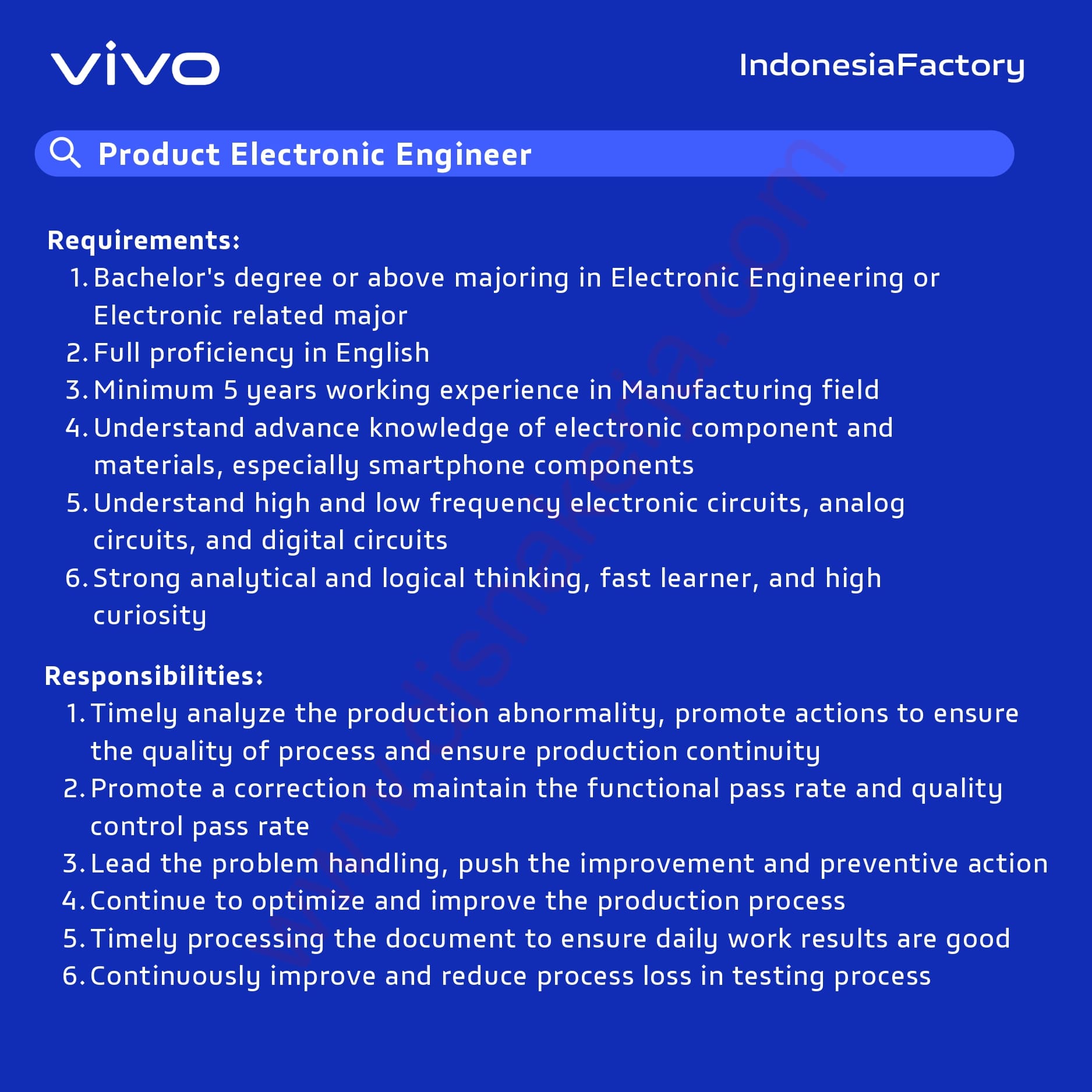- Understand advance knowledge of electronic component and materials, especially smartphone components
