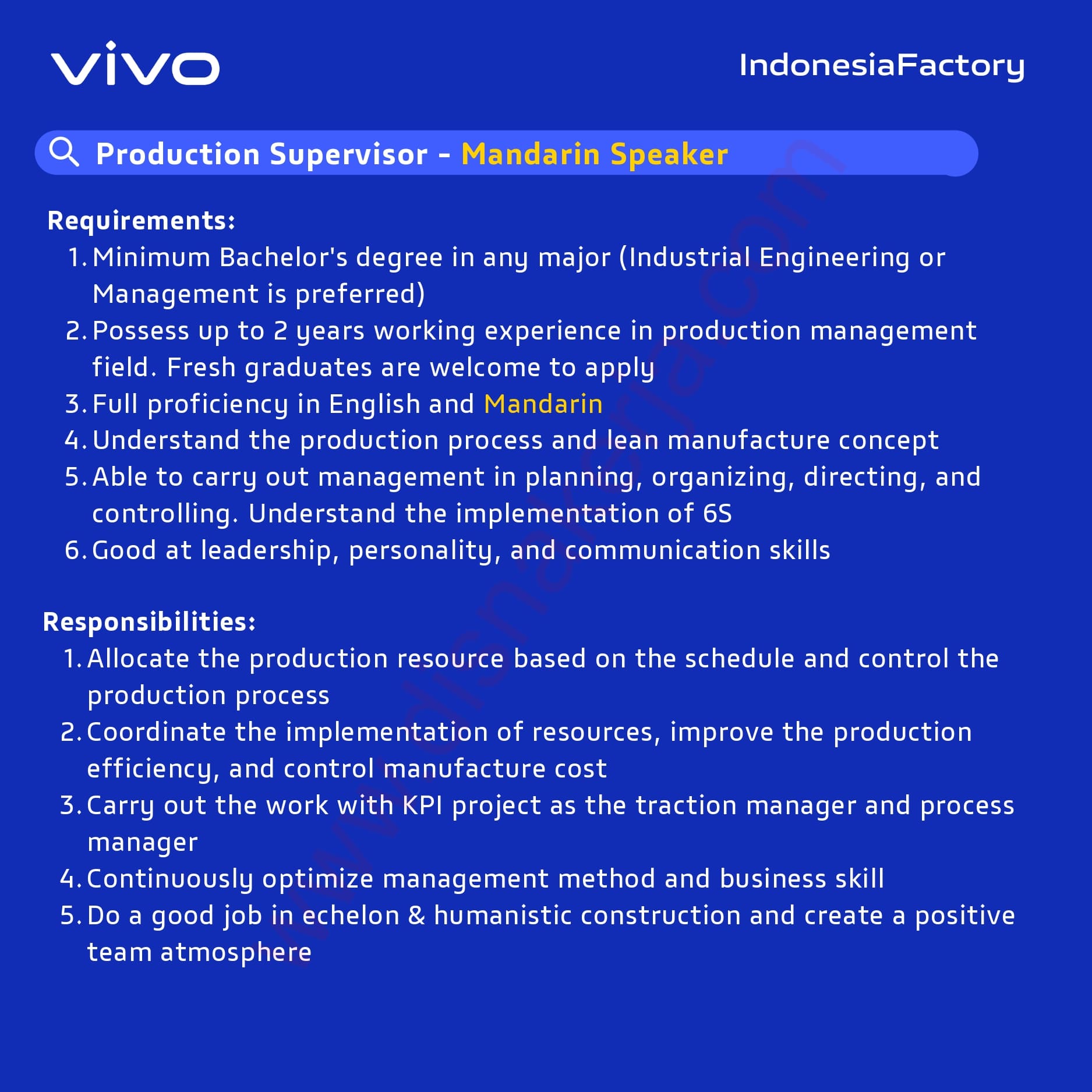 - Possess up to 2 years working experience in production management field. Fresh graduate are welcome to apply
