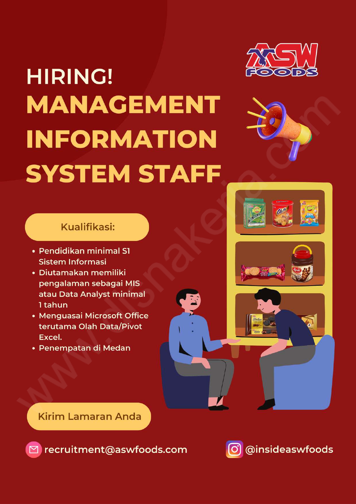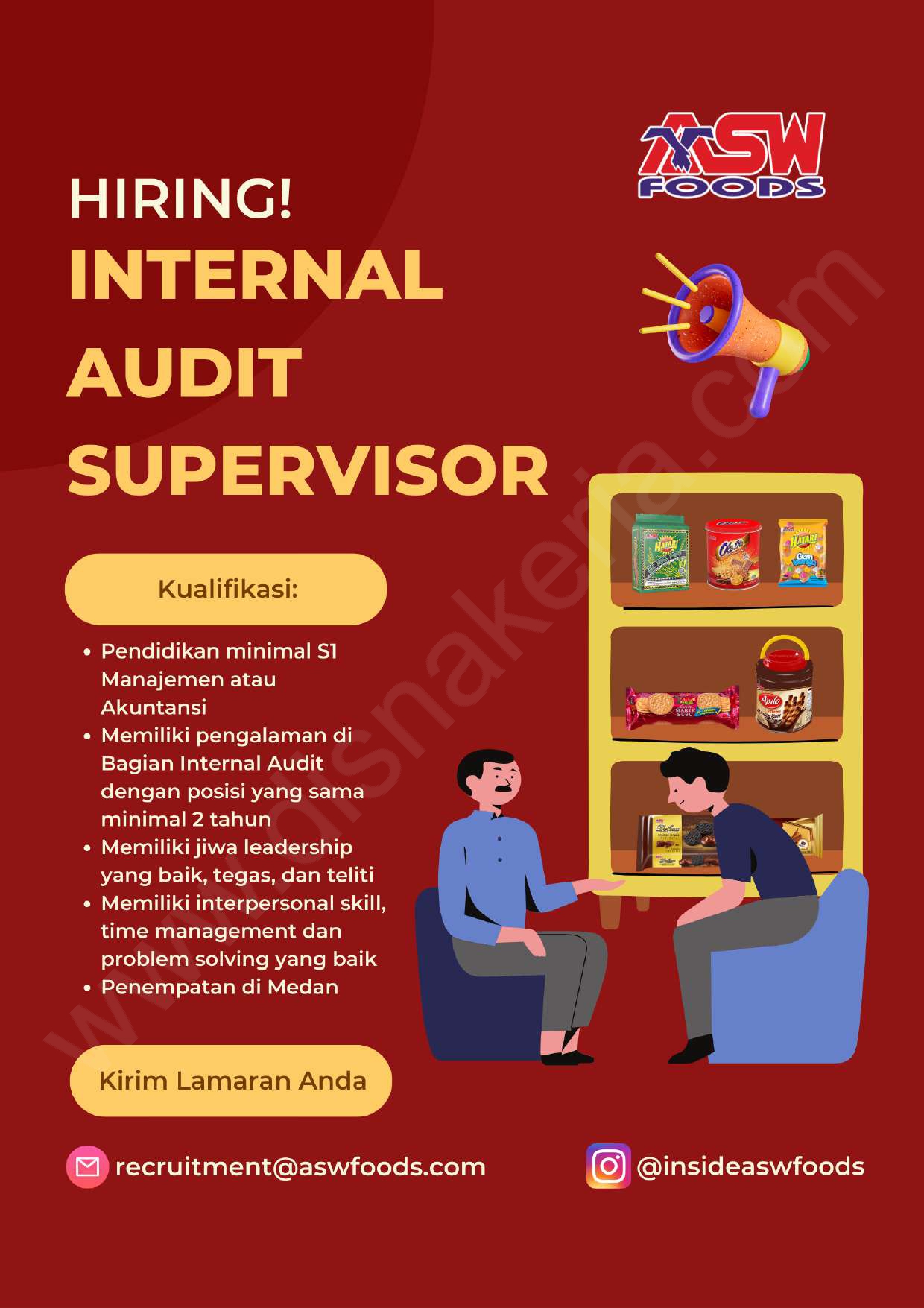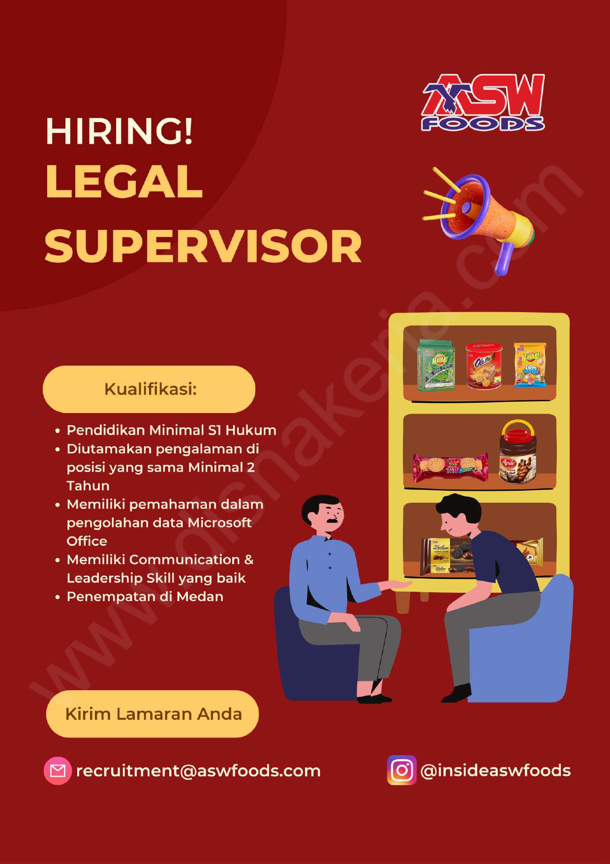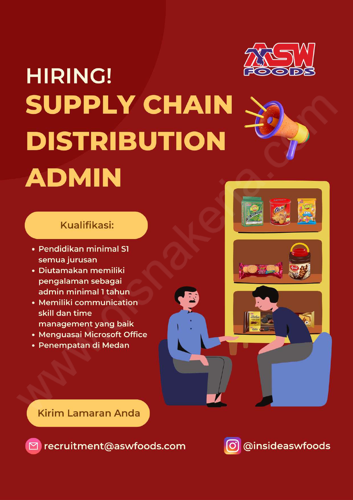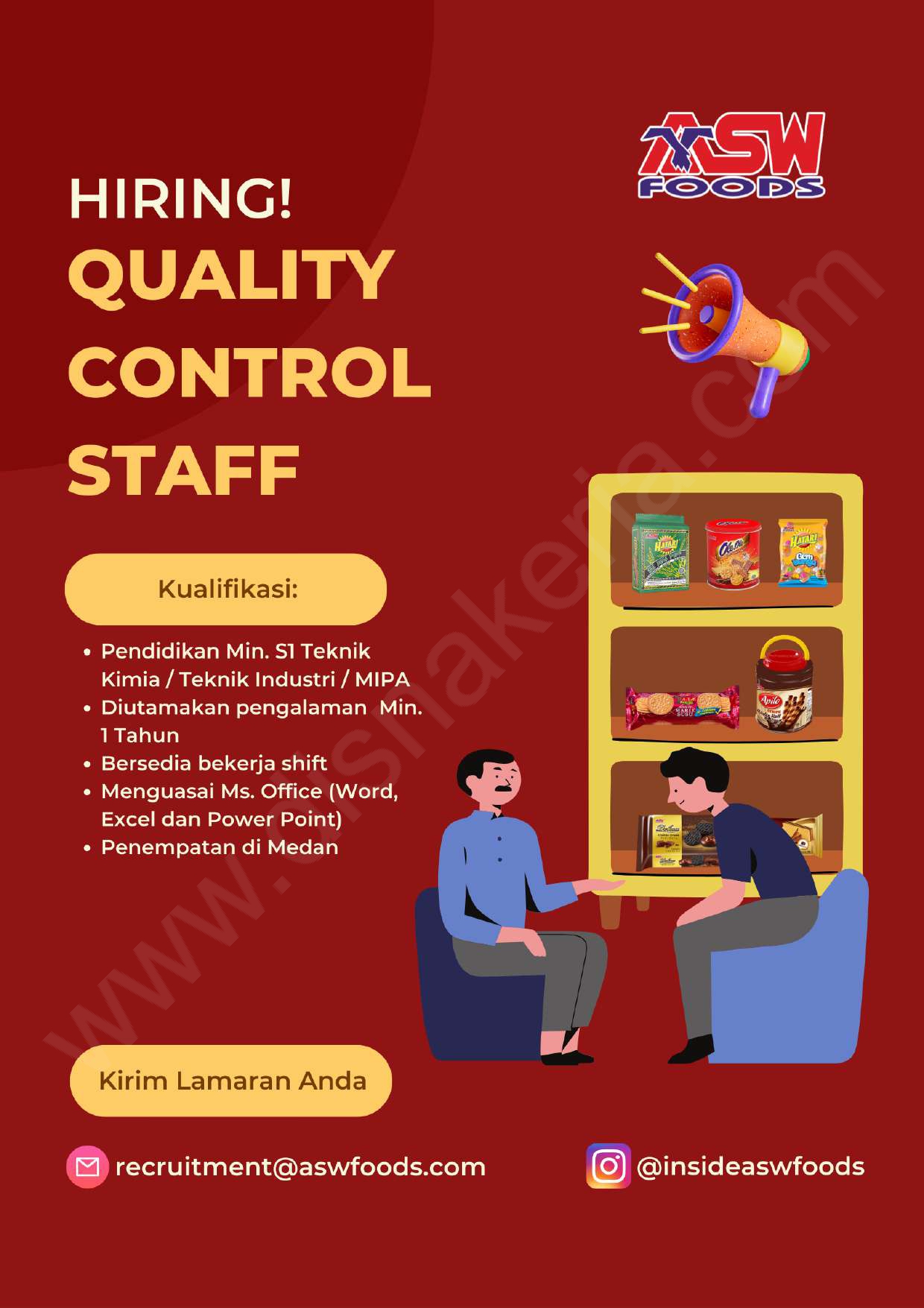 Calon kandidat yang berminat, silahkan mengirimkan CV lengkap ke: recruitment@aswfoods.com