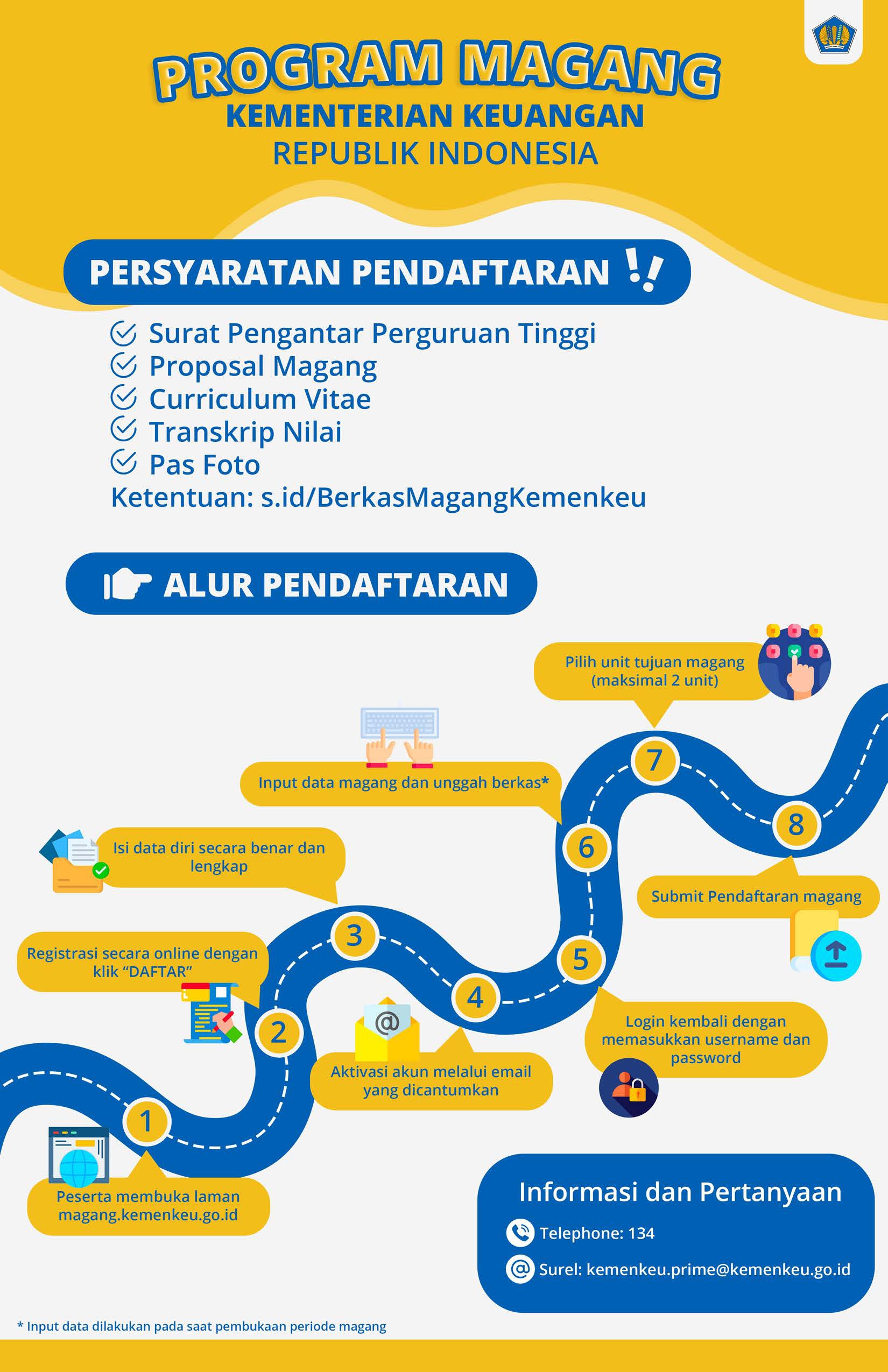 Kementerian Keuangan membuka kesempatan bagi seluruh mahasiswa/i tanpa terkecuali yang berkeinginan melaksanakan magang dalam rangka menyelesaikan studi perguruan tinggi.