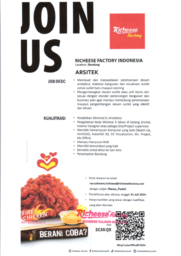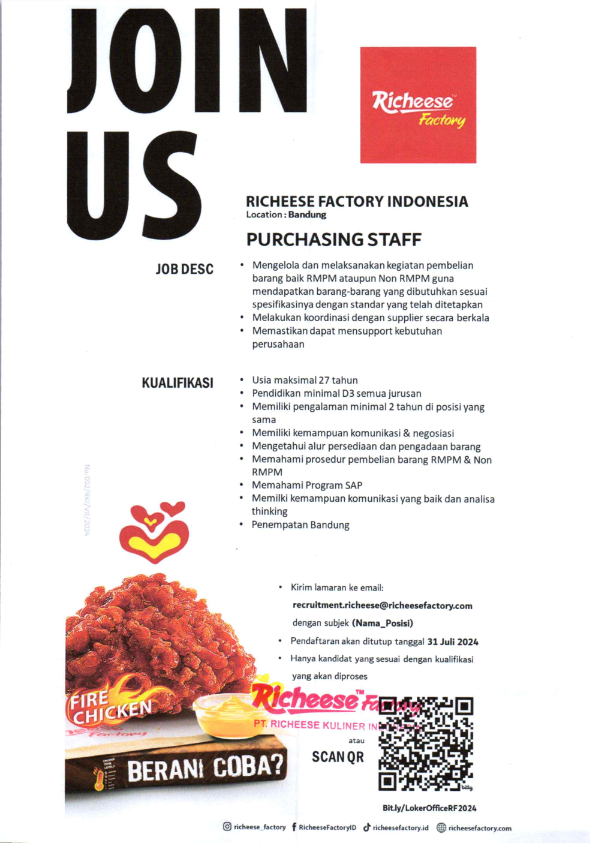 recruitment.richeese@richeesefactory.com dengan subjek : (Nama_Posisi)