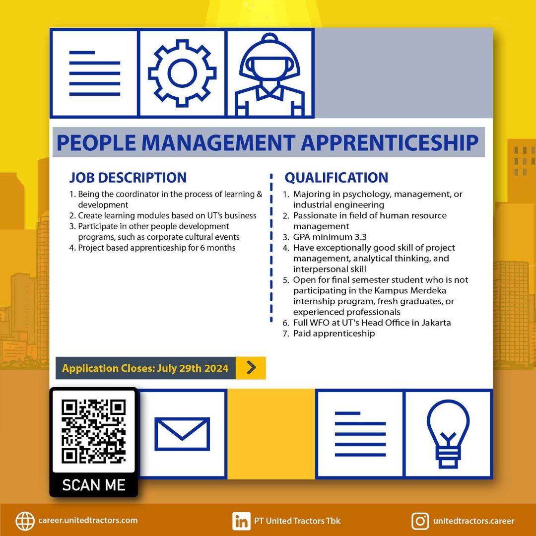 - Open for final semester student who is not participating in the Kampus Merdeka internship program, fresh graduates, or experienced professionals