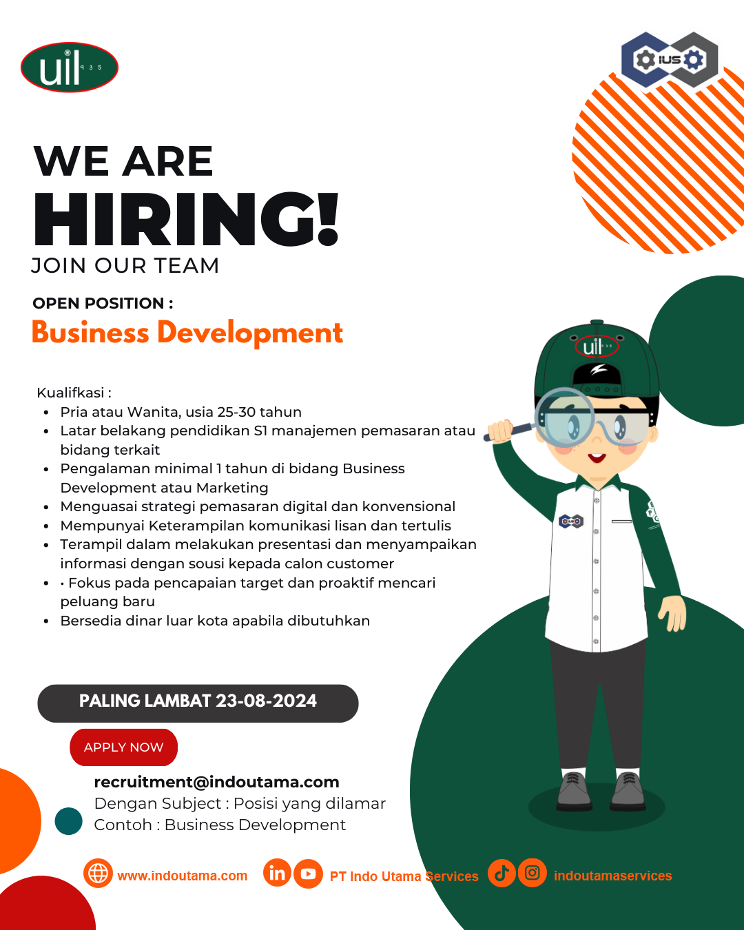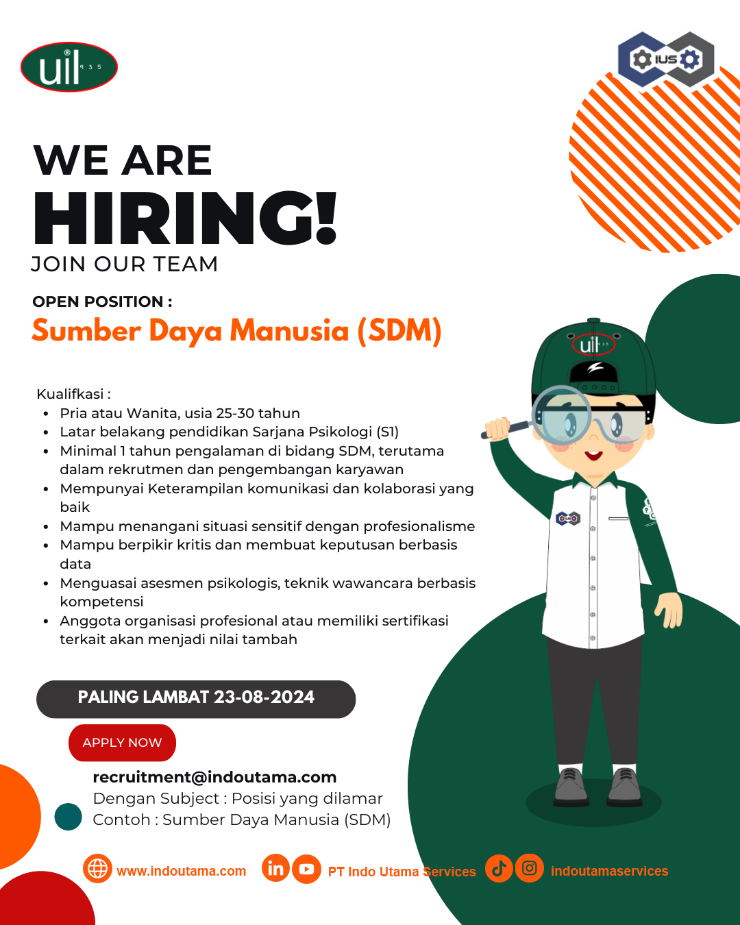 PT. Indoutama Services sedang membuka kesempatan karir untuk posisi: