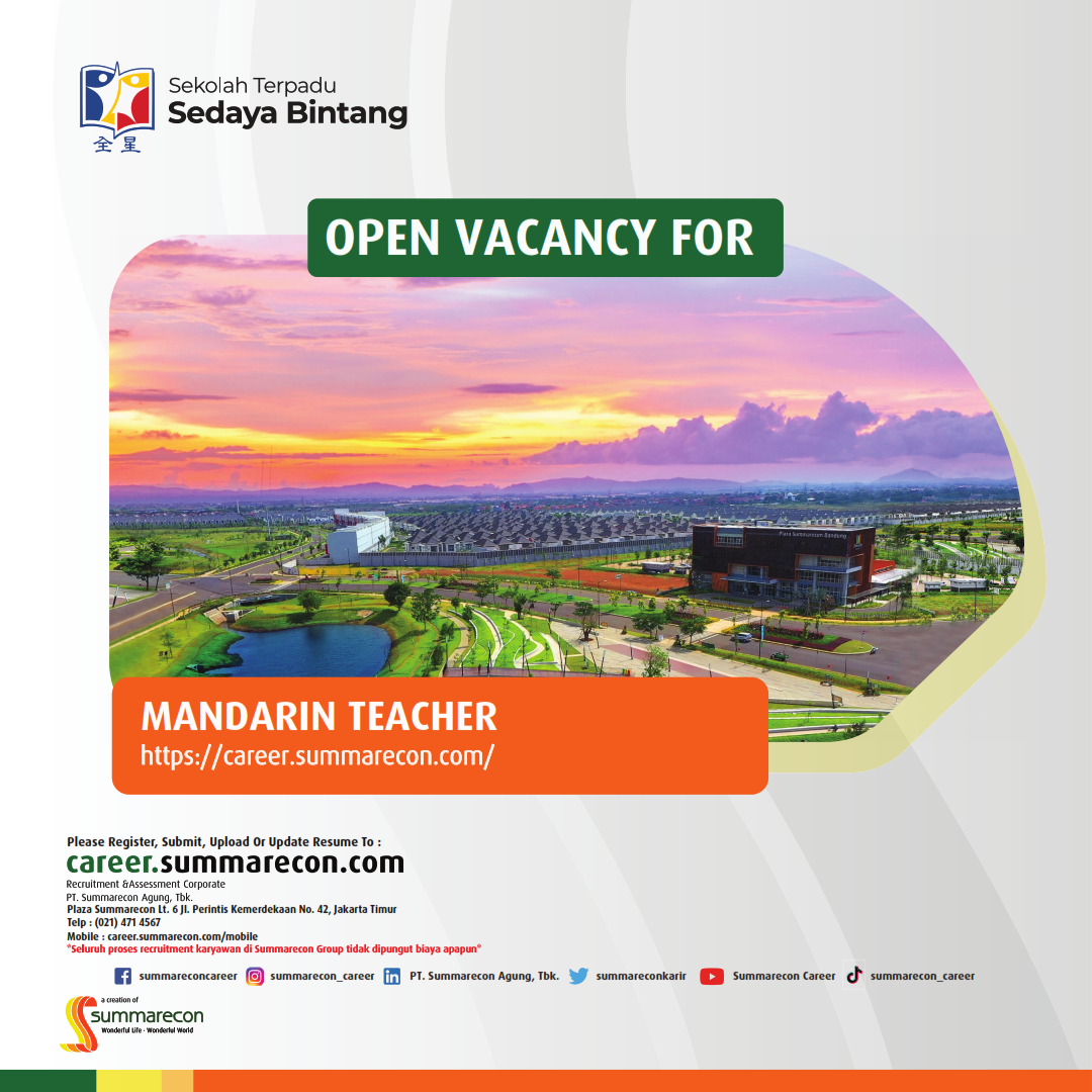 Sekolah Terpadu Sedaya Bintang dibawah naungan PT Summarecon Agung membuka lowongan pekerjaan untuk posisi sebagai berikut :