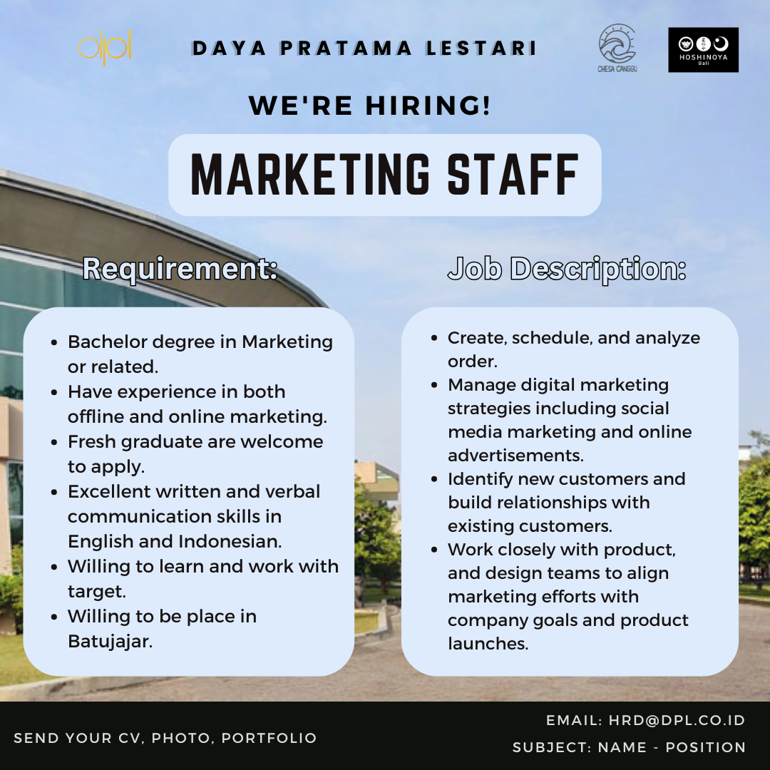 Kirim CV, Photo, Portfolio ke email : HRD@DPL.CO.ID