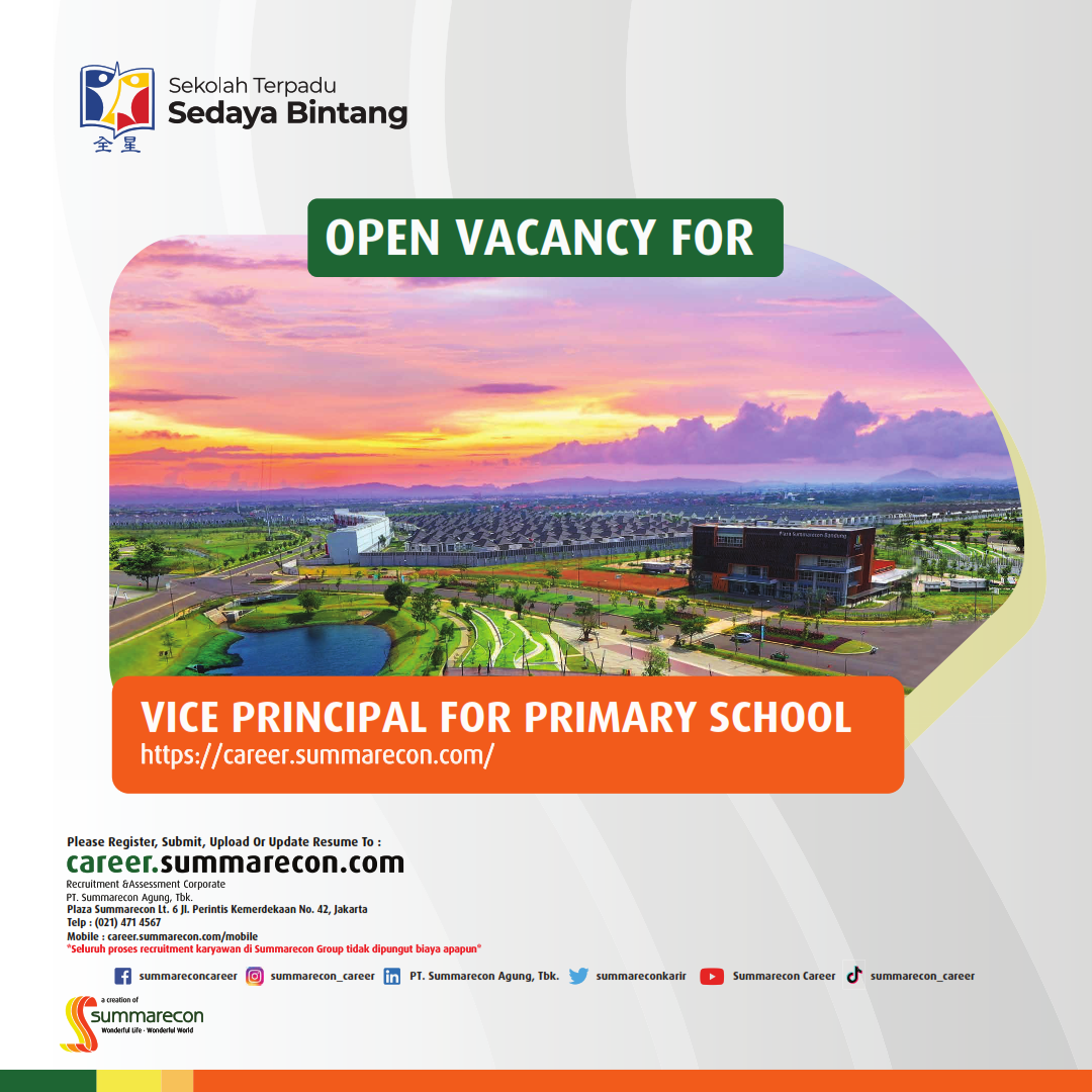 Sekolah Terpadu Sedaya Bintang dibawah naungan PT Summarecon Agung membuka lowongan pekerjaan untuk posisi sebagai berikut :