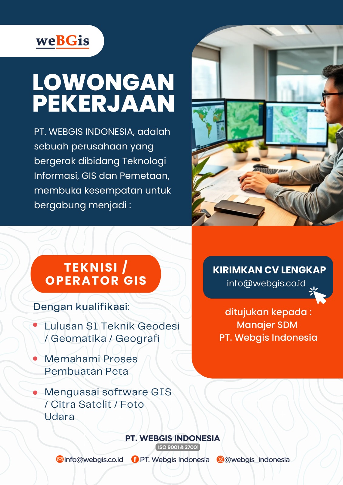 PT WEBGIS INDONESIA adalah sebuah perusahaan yang bergerak dibidantg teknologi informasi, GIS, dan pemetaan, membuka kesempatan untuk bergabung menduduki posisi sebagai berikut :