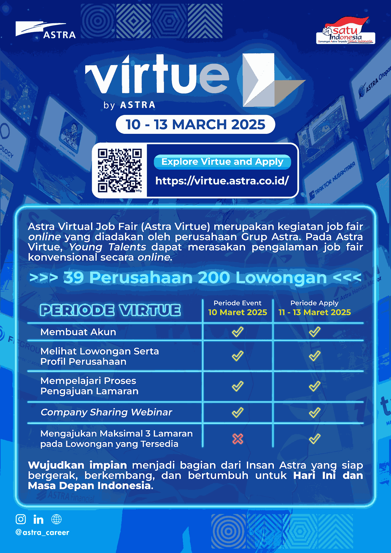 Astra Virtual Job Fair 2025 PT Astra International Tbk, akan menyelenggarakan dalam kegiatan Astra Virtual Job Fair periode Maret 2025 Read More