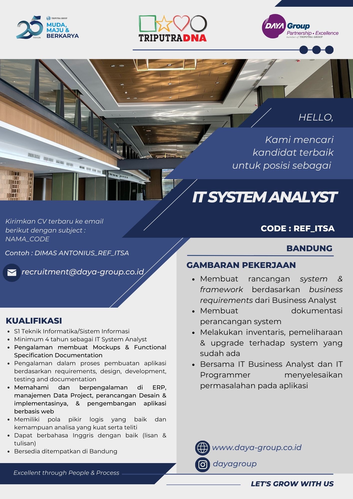 - Memiliki pengalaman minimal 4 tahun sebagai IT System Analyst.