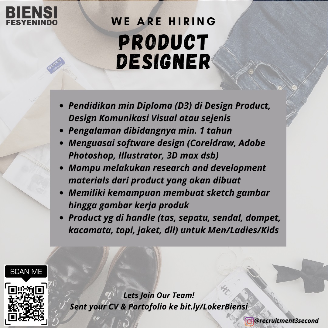 - Pendidikan min Diploma (D3) di Design Product, Design Komunikasi Visual atau sejenis