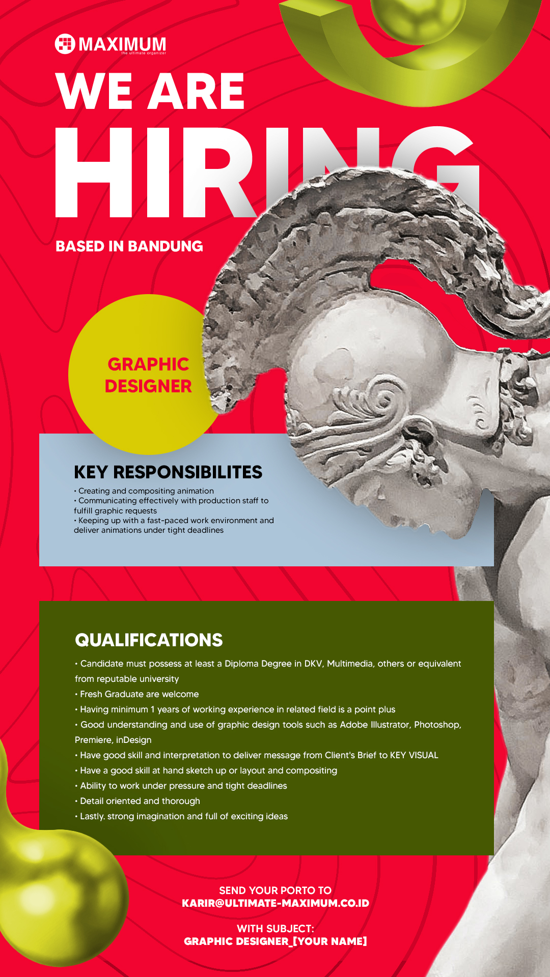 - Have good skill and interpretation to deliver message from Client's Brief to KEY VISUAL