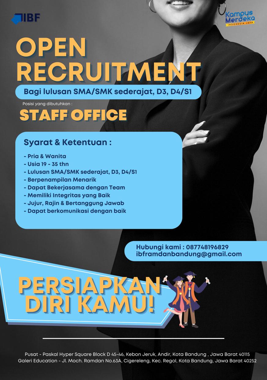 Perusahaan kami membuka peluang kerja bagi para alumni dan lulusan kampus untuk posisi Staff Office dengan Jobdesk :