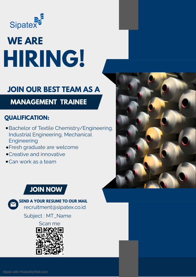 Pendidikan Min. D3/S1 Teknik/Kimia Tekstil, Teknik Industri, Teknik Mesin