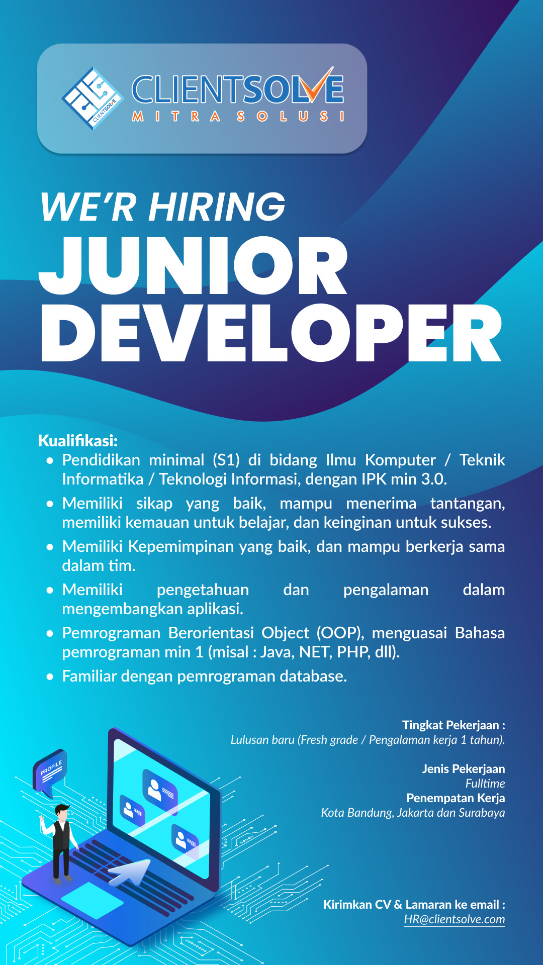 - Pendidikan minimal (S1) di bidang Ilmu Komputer / Teknik Informatika / Teknologi Informasi, dengan IPK min 3.0.
