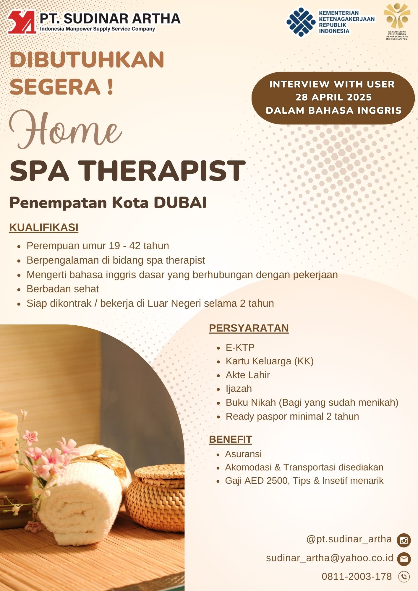 - Berpengalaman di bidang spa therapist