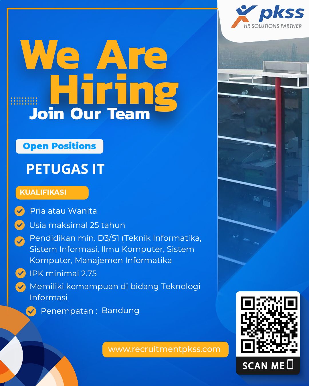 - Pendidikan minimal D3/S1 (Teknik Informatika, Ilmu Komputer, Sistem Informasi, Sistem Komputer, Manajemen Informatika)