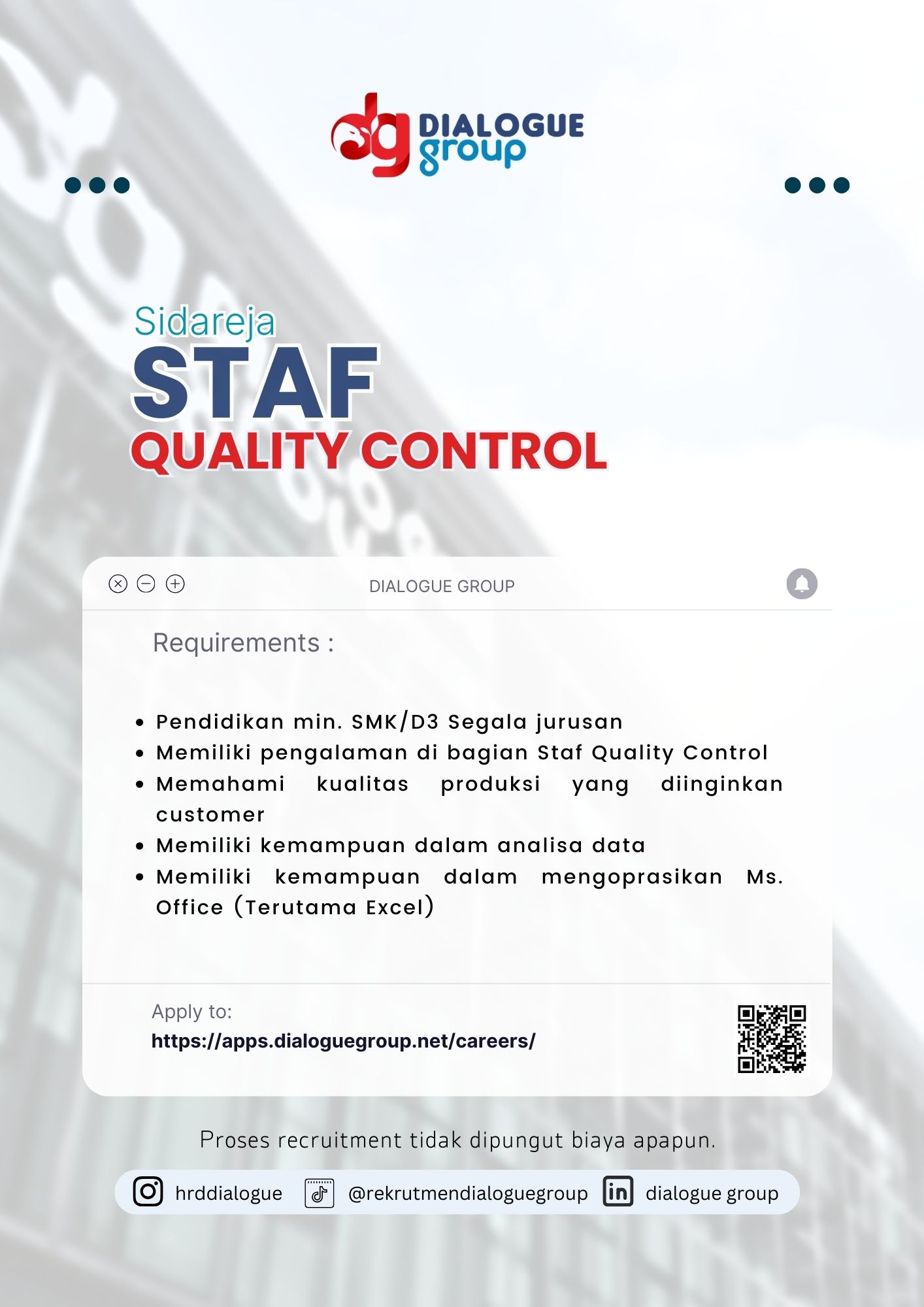 Memiliki pengalaman di bagian Staf Quality Control