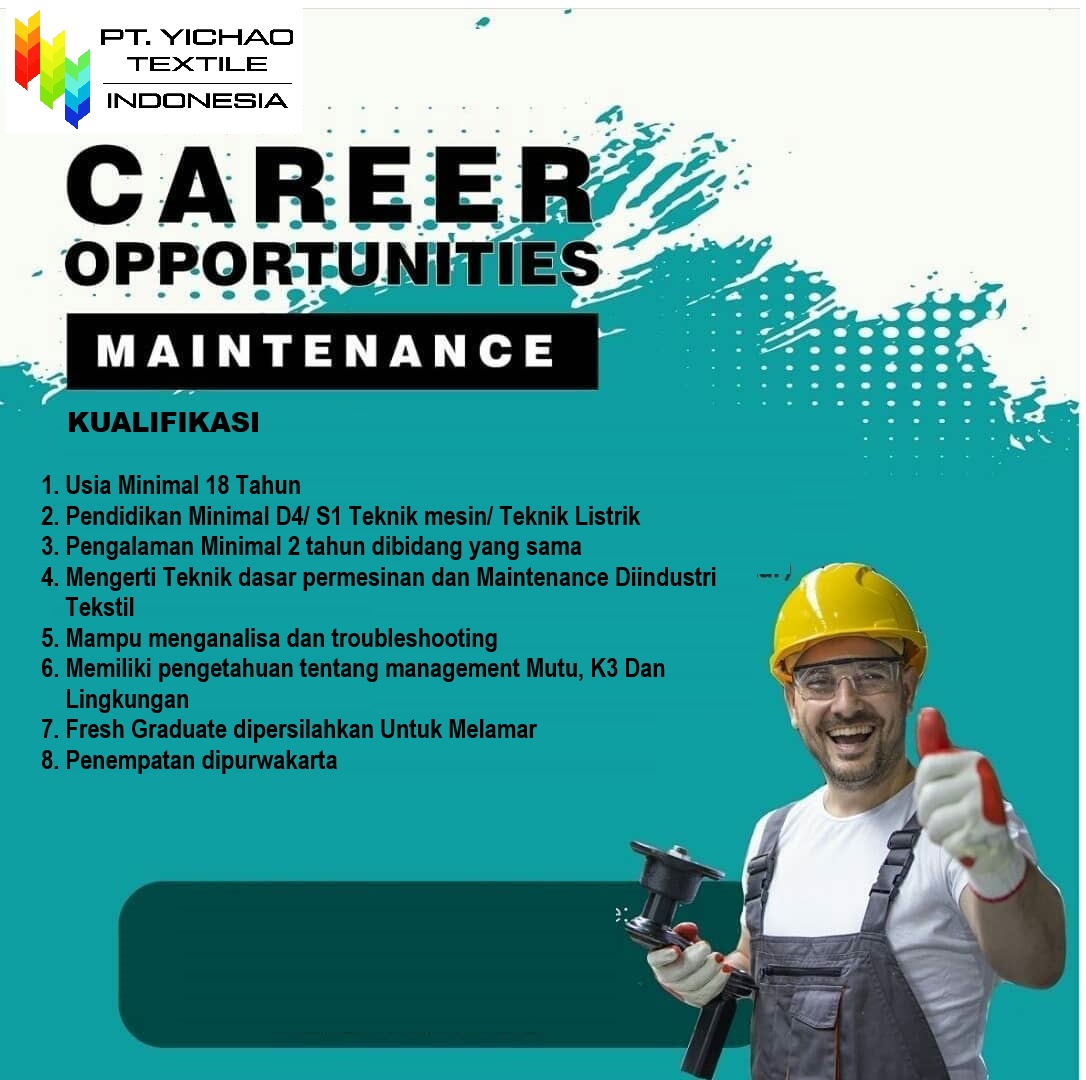 - Mengerti teknik dasar permesinan dan maintenance di industri tekstil.