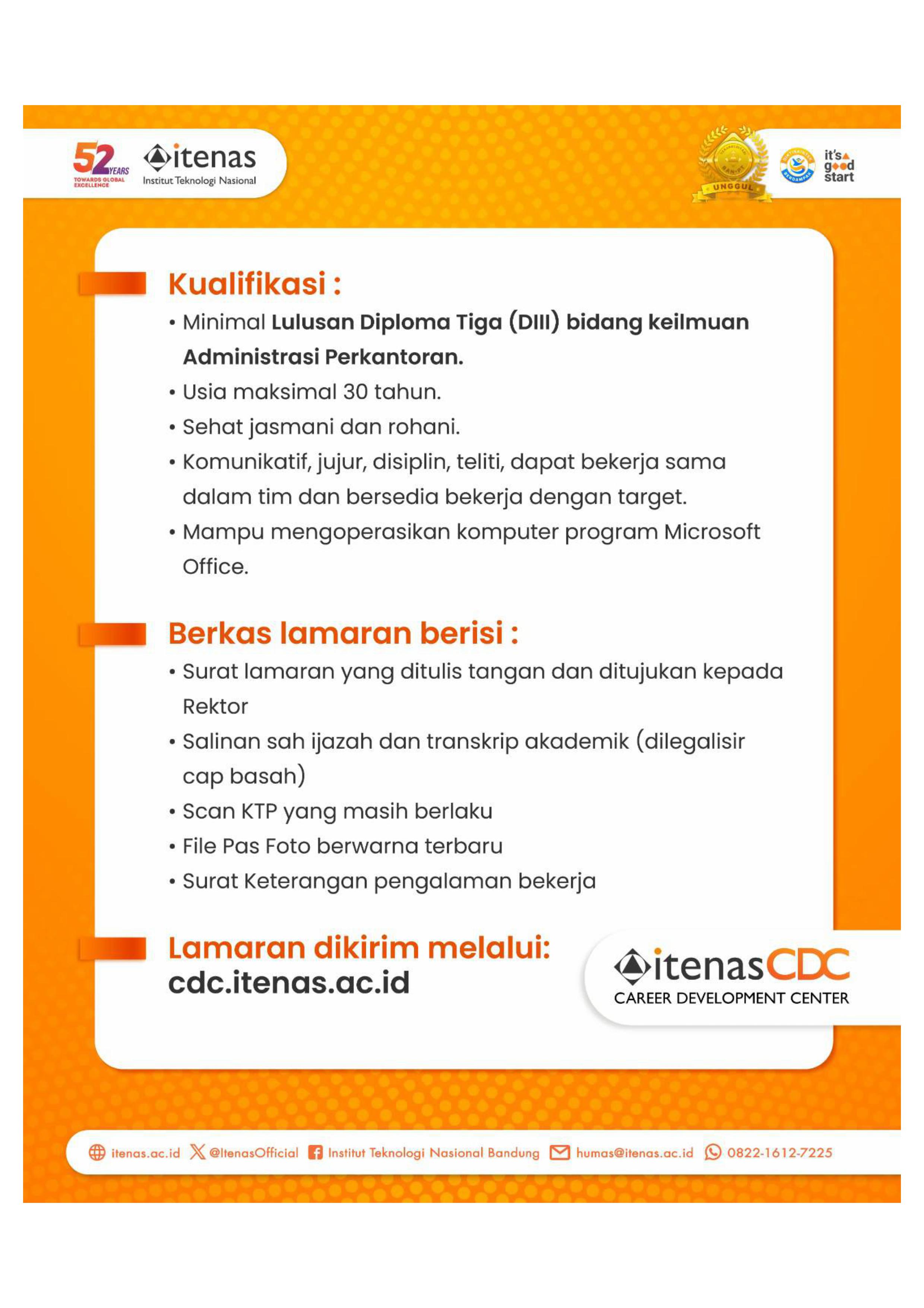 Institut Teknologi Nasional bandung Sedang Membuka Lowongan Kerja Sebagai Tenaga Kependidikan