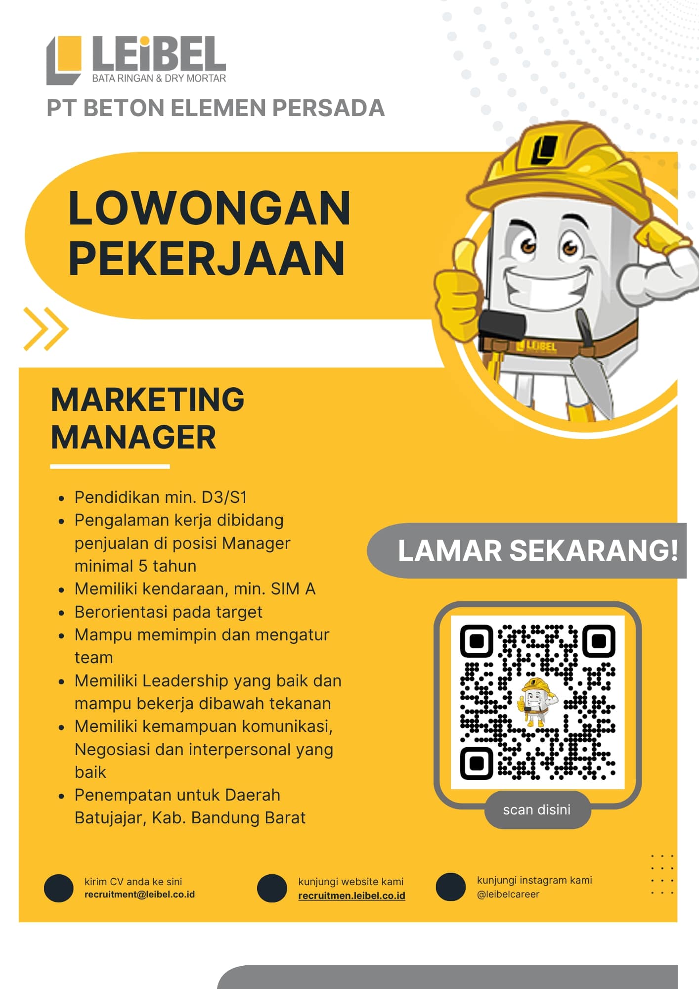 - Pengalaman kerja dibidang penjualan di posisi Manager minimal 5 tahun