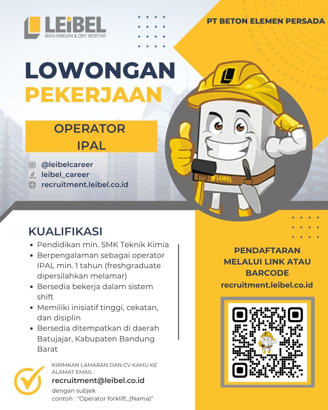 - Berpengalaman sebagai operator IPAL min. 1 tahun (freshgraduate dipersilahkan melamar)