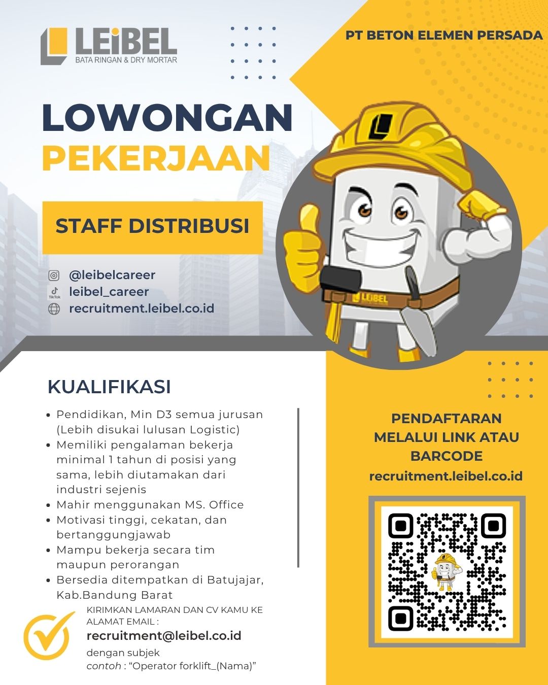 - Pendidikan, Min D3 semua jurusan (Lebih disukai lulusan Logistic)