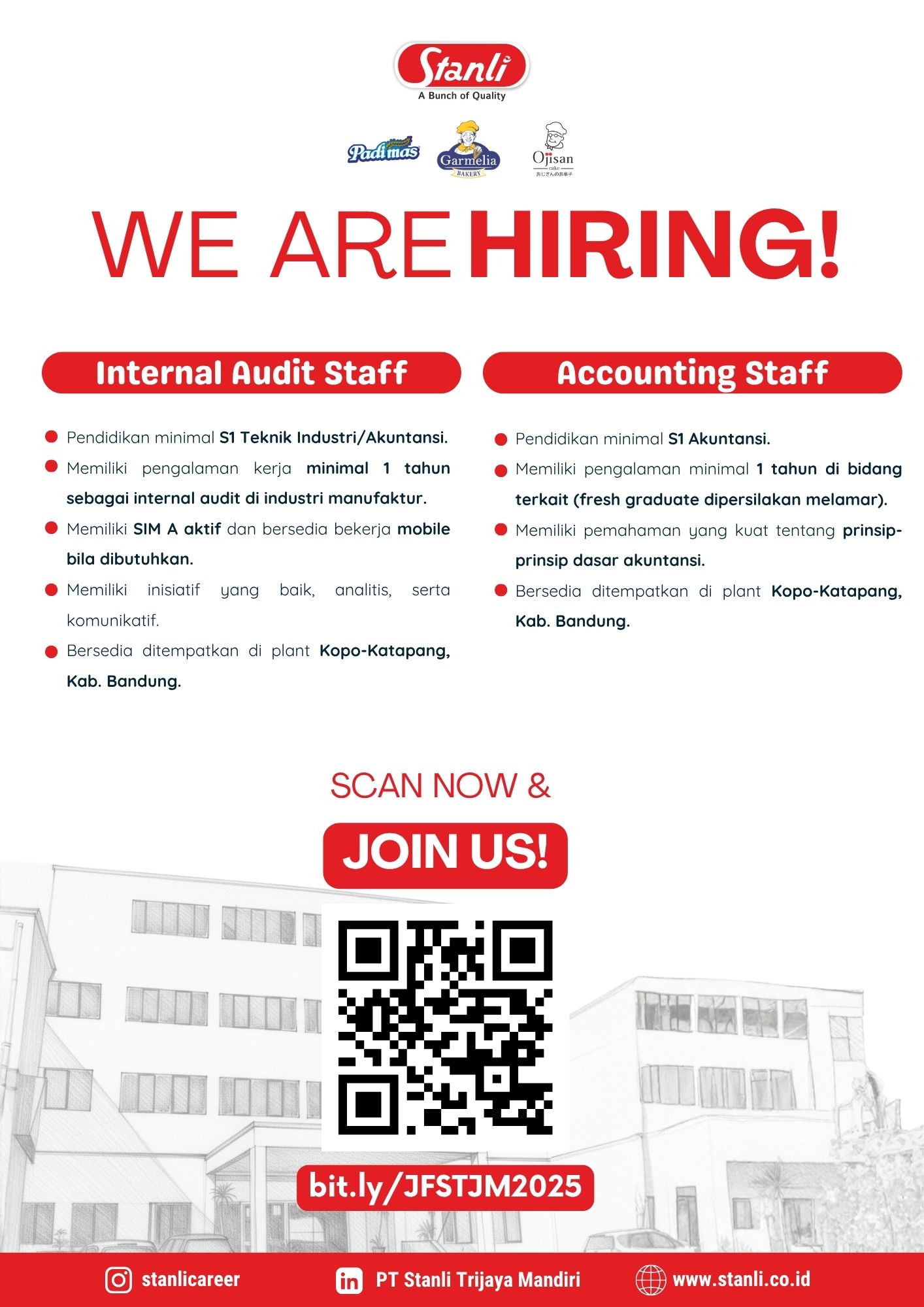 • Pendidikan minimal S1 Teknik Industri/Akuntansi
