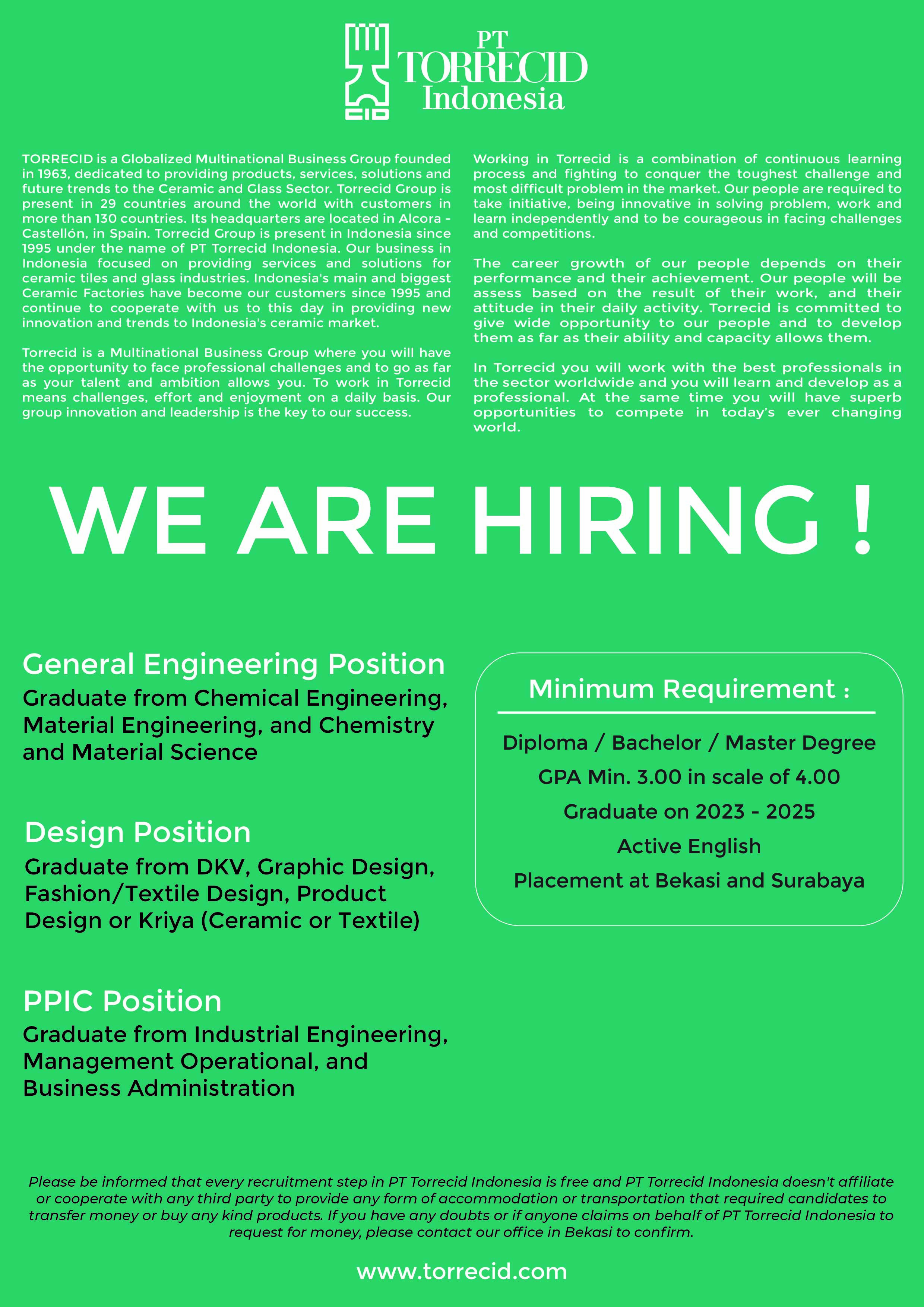 Torrecid is a leader in the ceramic and glass industries, operating in 29 countries and serving customers in over 130. In Indonesia, we've been a key innovation partner to major ceramic manufacturers since 1995.