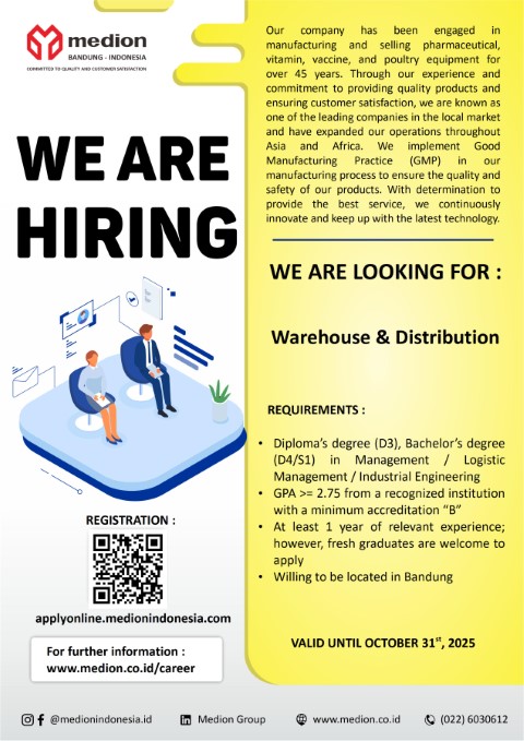 - Hanya kandidat yang melakukan apply online ke link Medion yang akan dilanjutkan proses rekrutmen & seleksinya