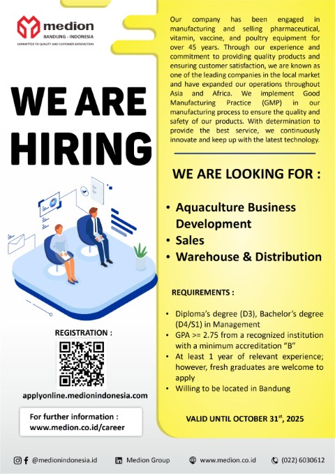 - Hanya kandidat yang melakukan apply online ke link Medion yang akan dilanjutkan proses rekrutmen & seleksinya