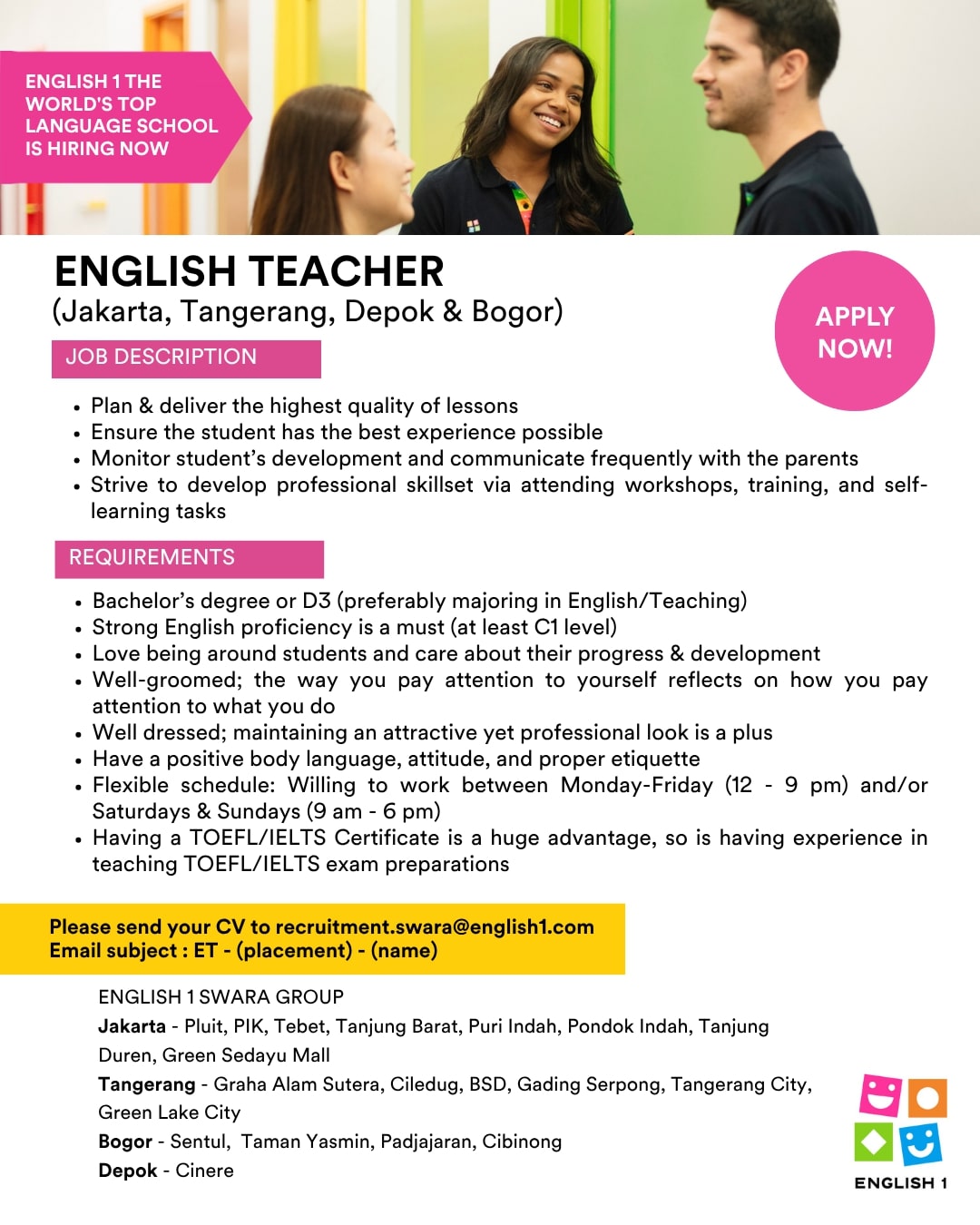 Bachelor's degree, or D3 (preferably majoring in English/Teaching)
