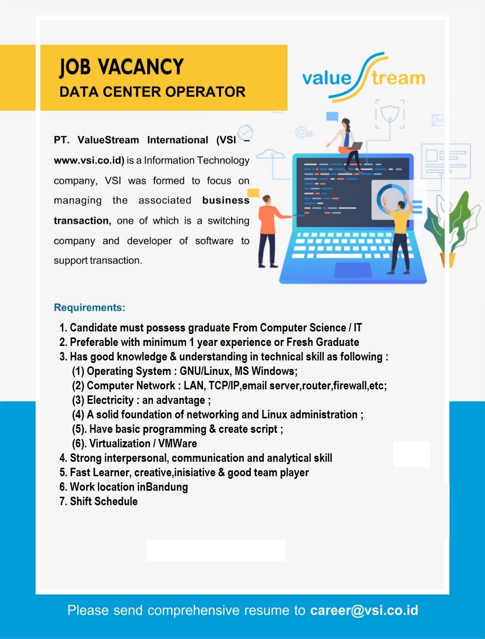 Send Your Comprehensive Resume to : career@vsi.co.id