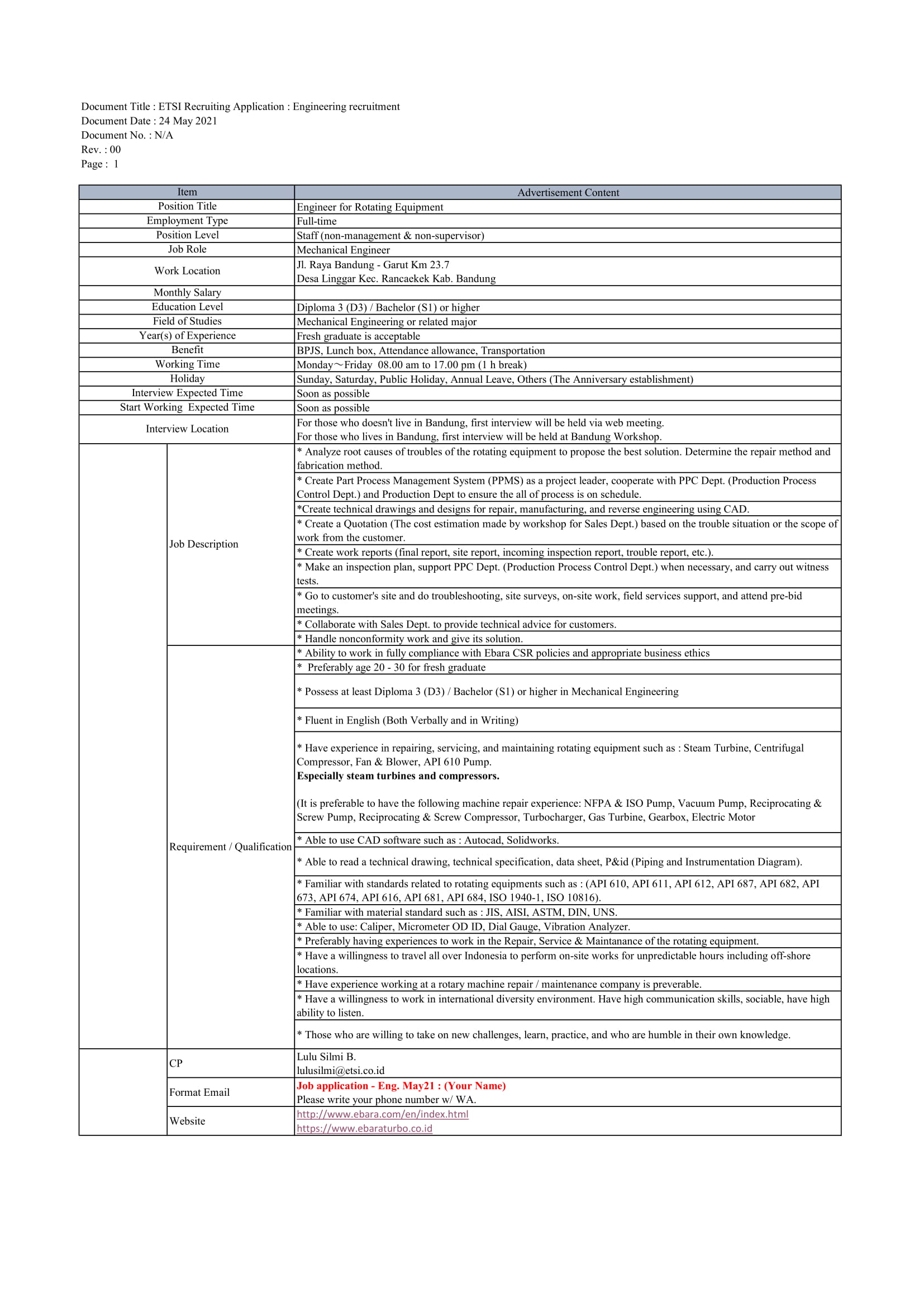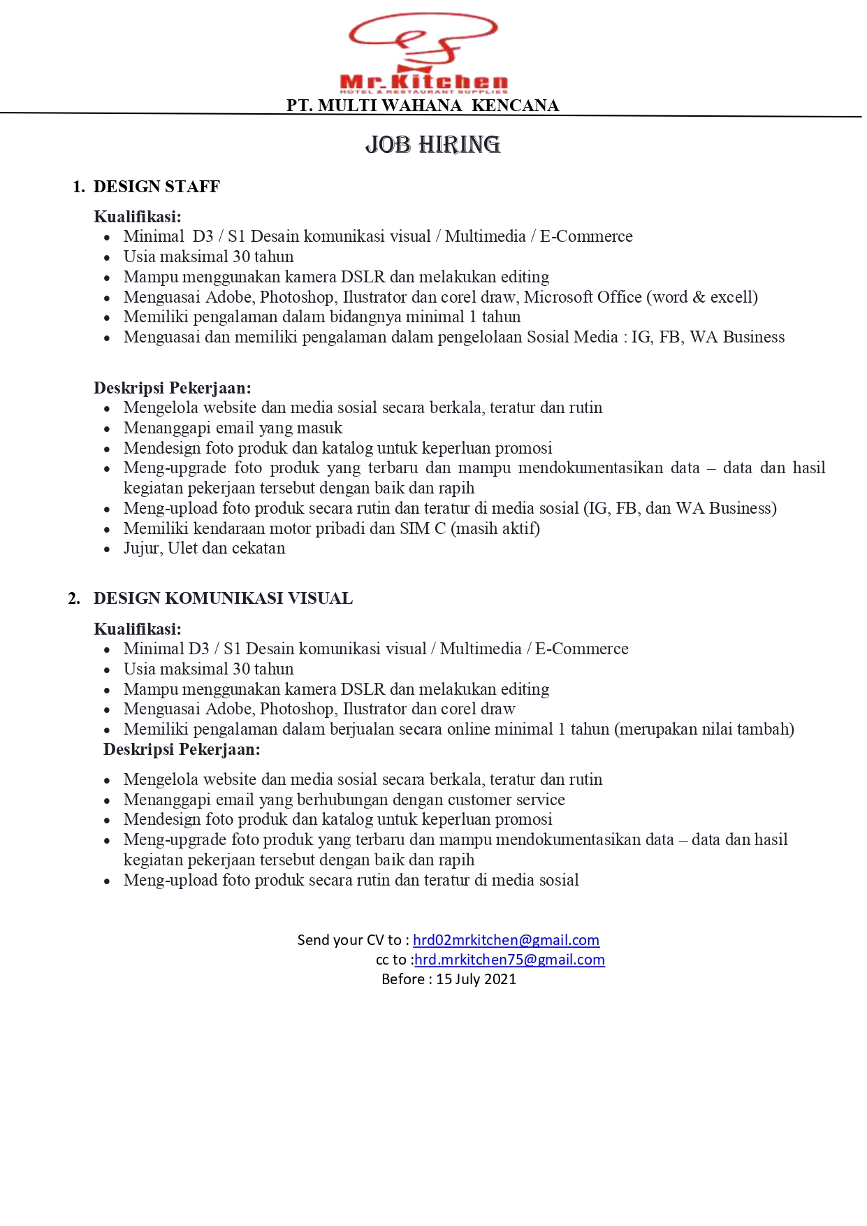 Open Recruitment PT. Multi Wahana Kencana (Mr Kitchen)