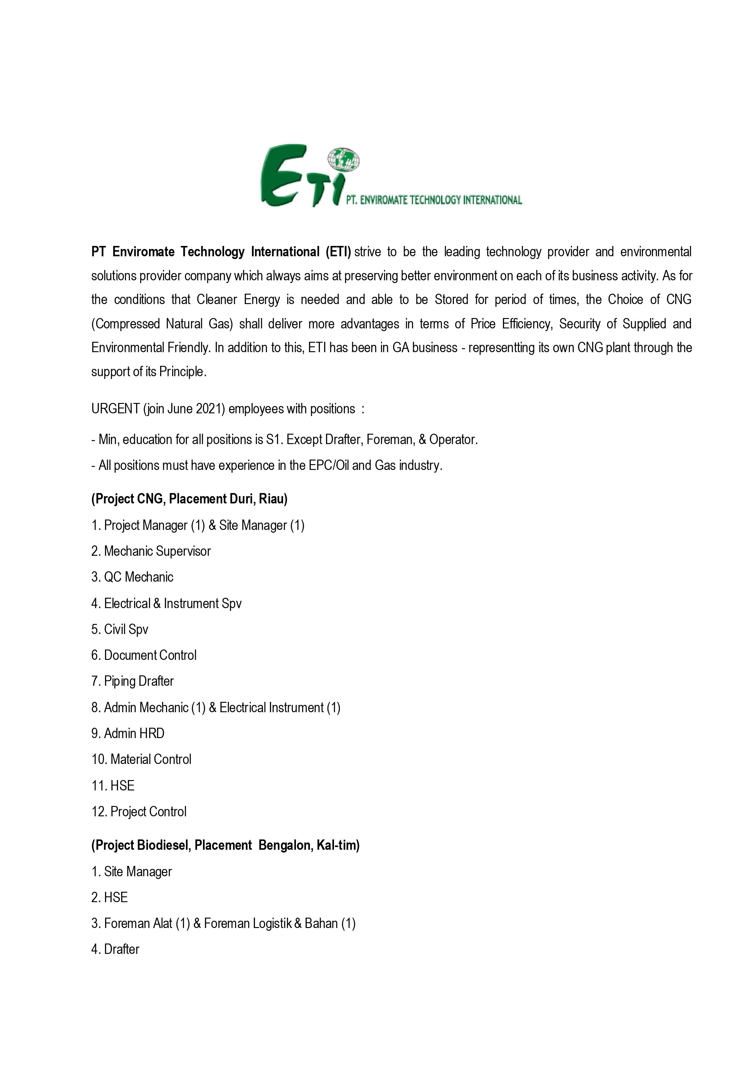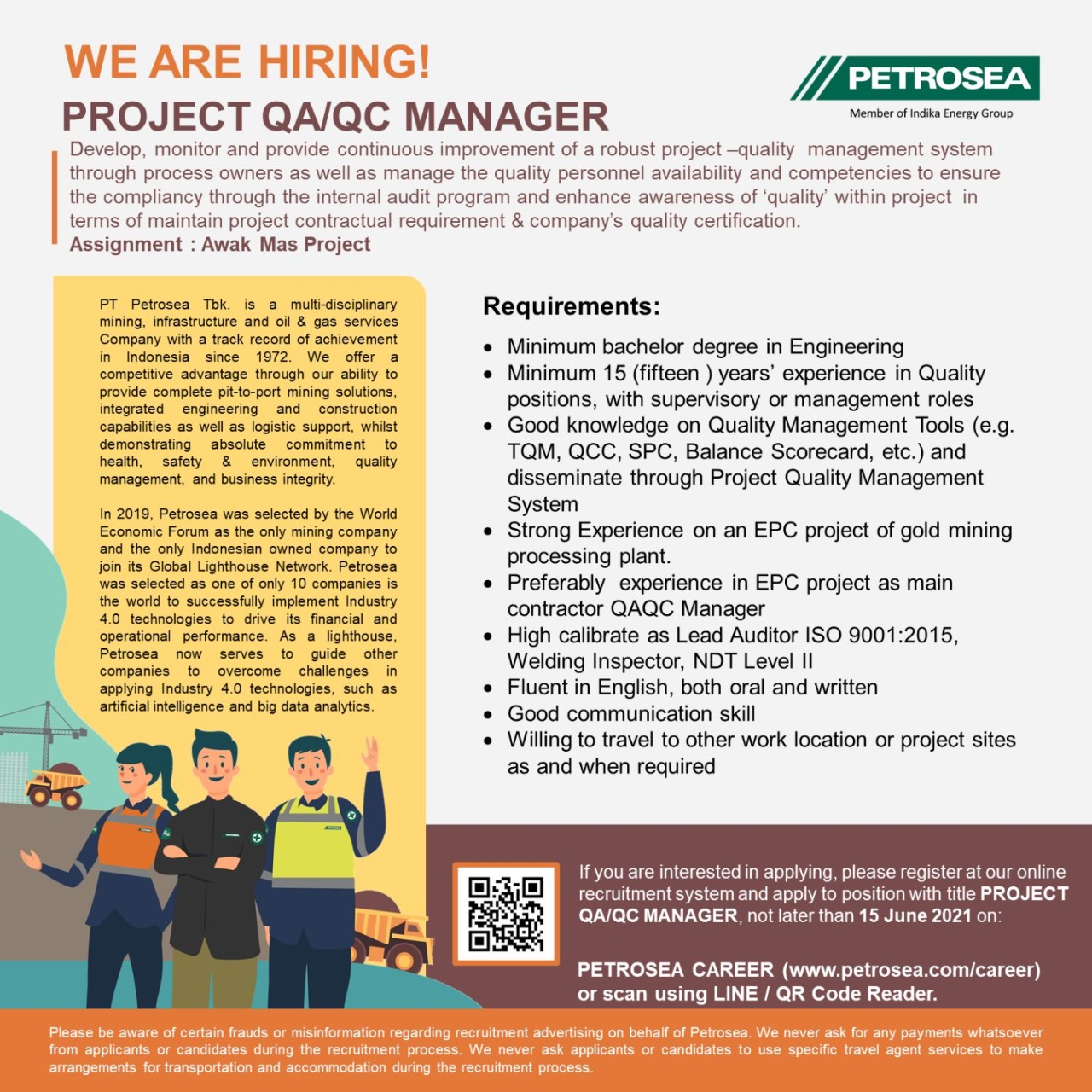 Project QA/QC Manager [PT. Petrosea Tbk]